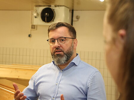 Trauer, Tod und Technik – das alles kommt im Krematorium zusammen. In der lichtdurchfluteten Trauerhalle können Familien, Angehörige und Freunde von ihren Lieben Abschied nehmen. Sie erhalten auch die Möglichkeit, von einem eigens eingerichteten Raum aus die Sargeinfahrt in den Ofen mit anzusehen. „Manch einer braucht genau diesen Moment, in dem das Feuer den Sarg erfasst, um den Tod tatsächlich zu begreifen“, erzählt Betriebsleiter Fabian Kremser.